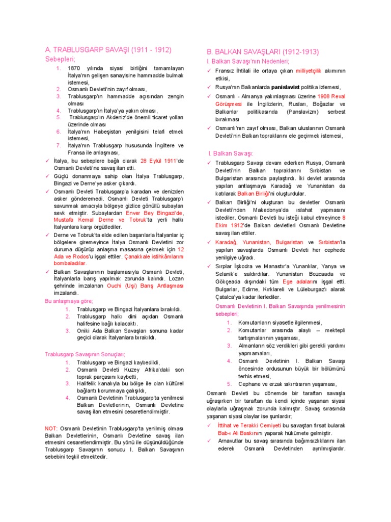 Balkan Savaslari Ve Sonuclari Ozet Notlar