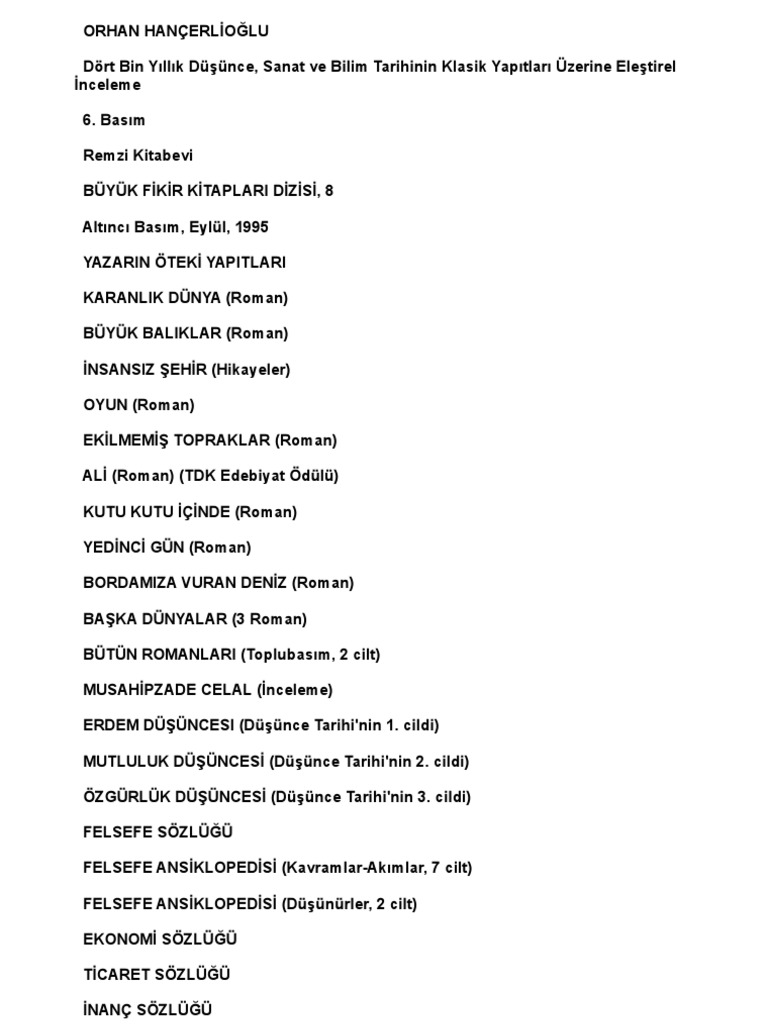 Orhan Hancerlioglu Dusunce Tarihi