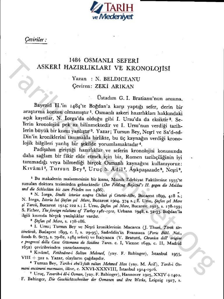 Zeki Arikan 1484 Osmanli Seferi Askeri Hazirliklari Ve Kronolojisi