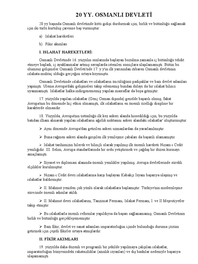 20 Yy Osmanli Devleti I Islahat Hareketleri