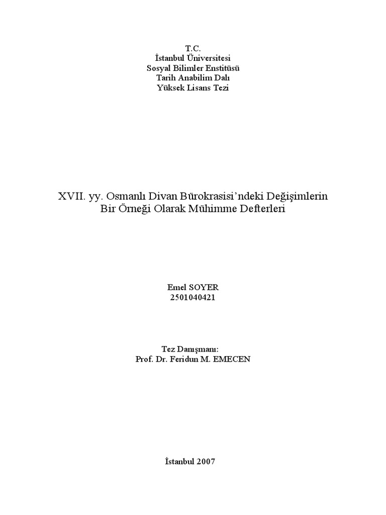 Xvii Yy Osmanli Divan Burokrasisi Ndeki Degisimlerin Bir Ornegi Olarak Muhimme Defterleri