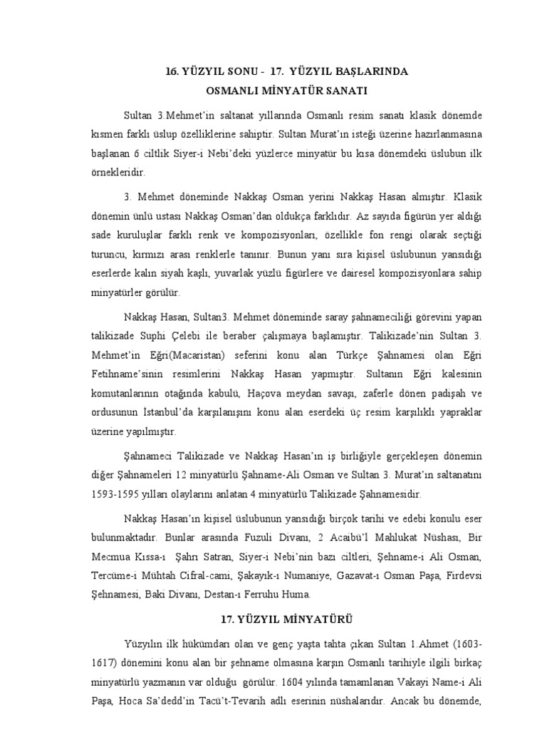 16 Yuzyil Sonu 17 Yuzyil Baslarinda Osmanli Minyatur Sanati