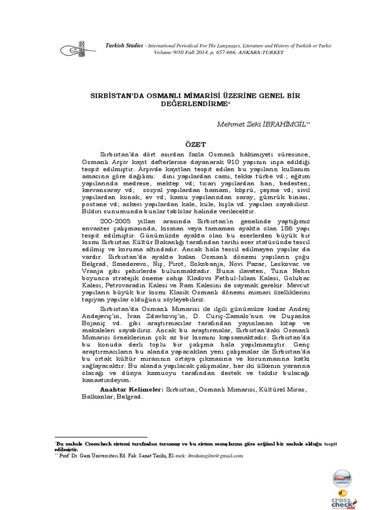 M Zeki Ibrahimgil Sirbistan Osmanli Mimarisi