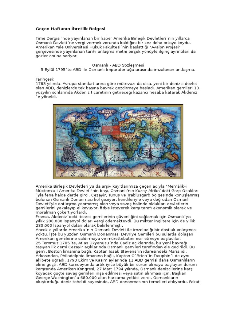 Osmanli Devleti Ile Amerika Arasinda Yapilan Anlasmanin Gizli Maddesi Tarih Arsivi