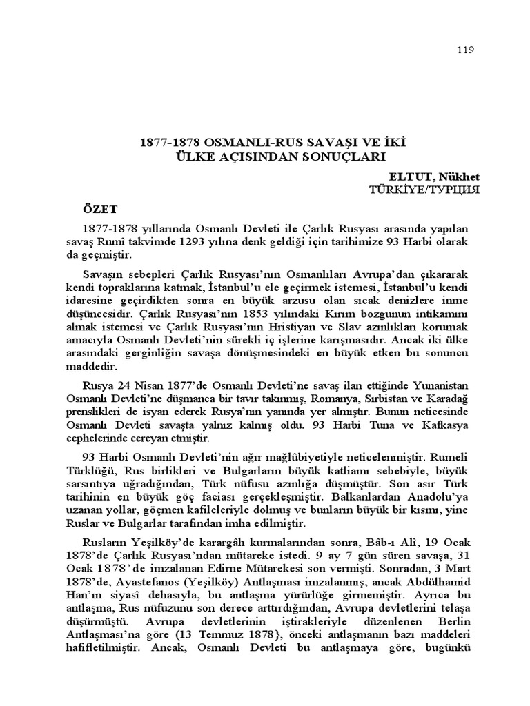 1877 1878 Osmanli Rus Savasi Ve I Ki Ulke Acisindan Sonuclari Nukhet Eltut