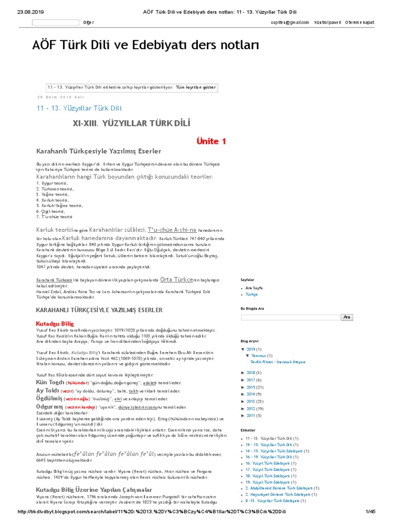 Aof Turk Dili Ve Edebiyati Ders Notlari 11 13 Yuzyillar Turk Dili