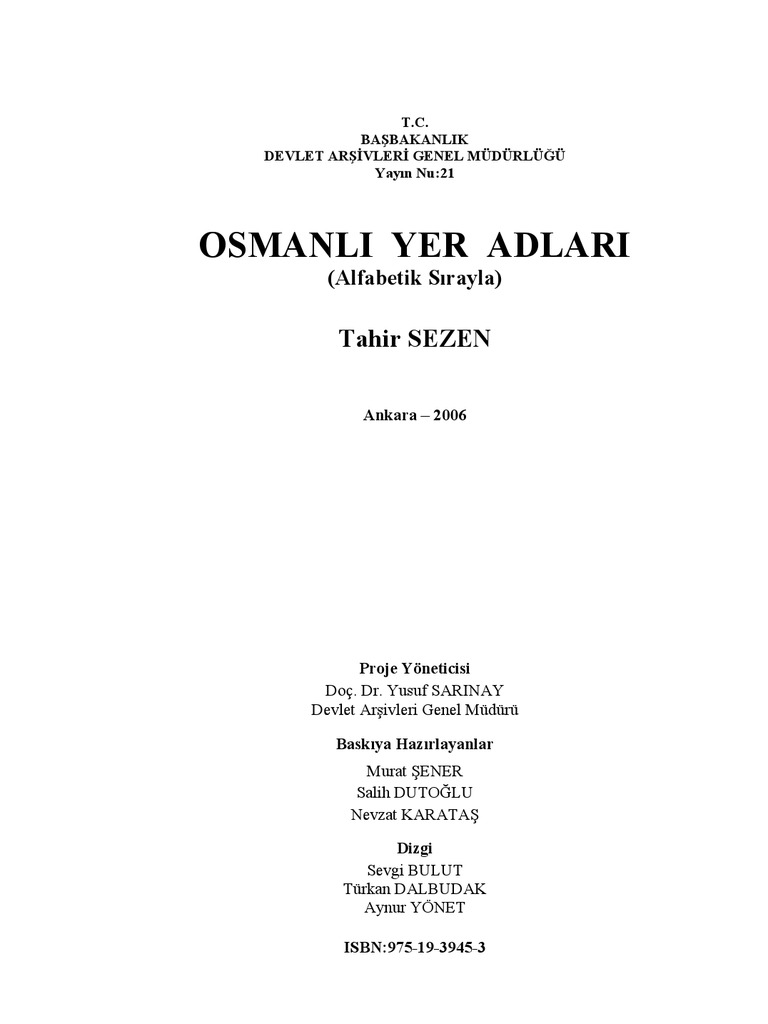 Sezen Tahir Osmanli Yer Adlari Pdf Vse Dlya Studenta
