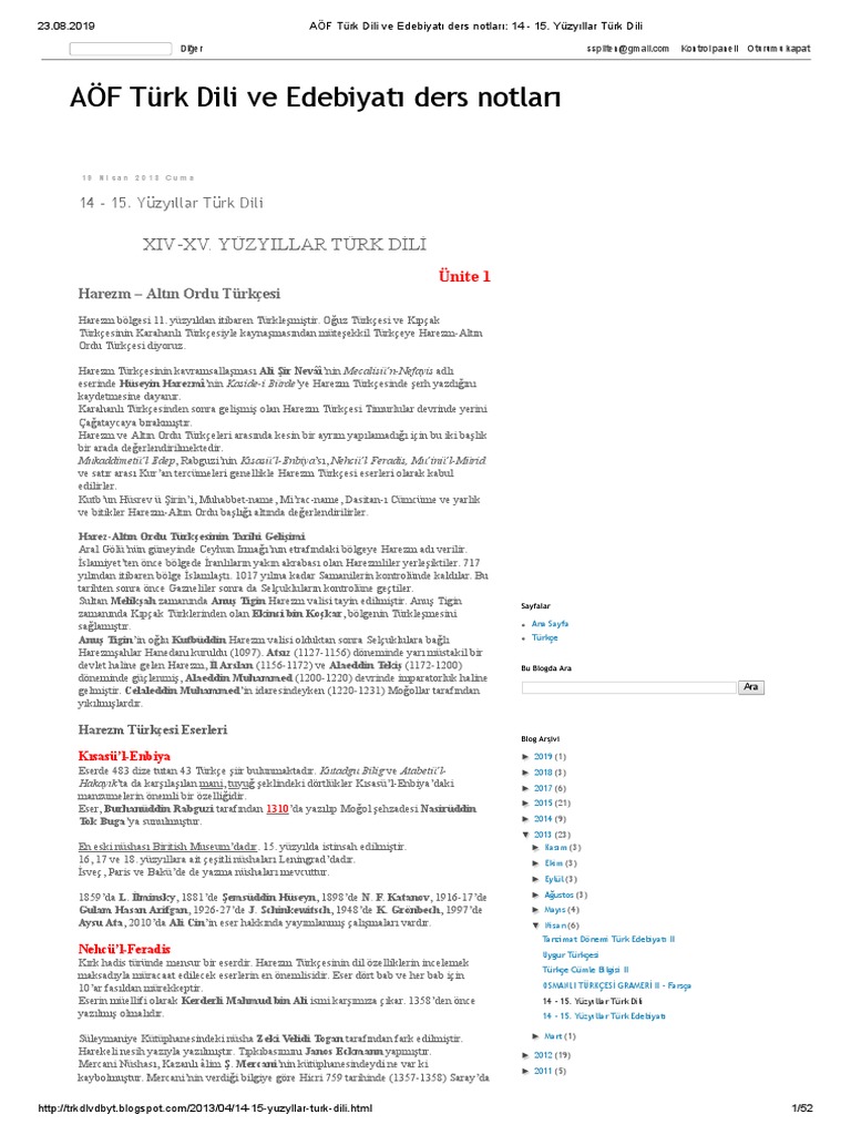 Aof Turk Dili Ve Edebiyati Ders Notlari 14 15 Yuzyillar Turk Dili