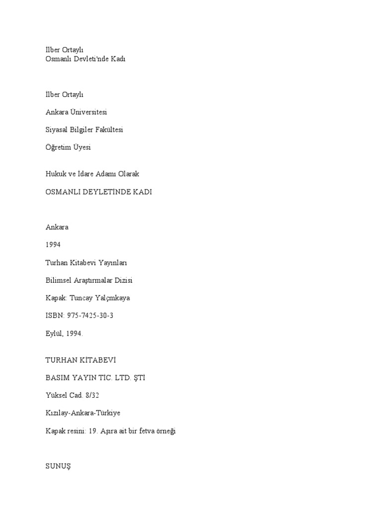 Ilber Ortayli Osmanli Devleti Nde Kadi