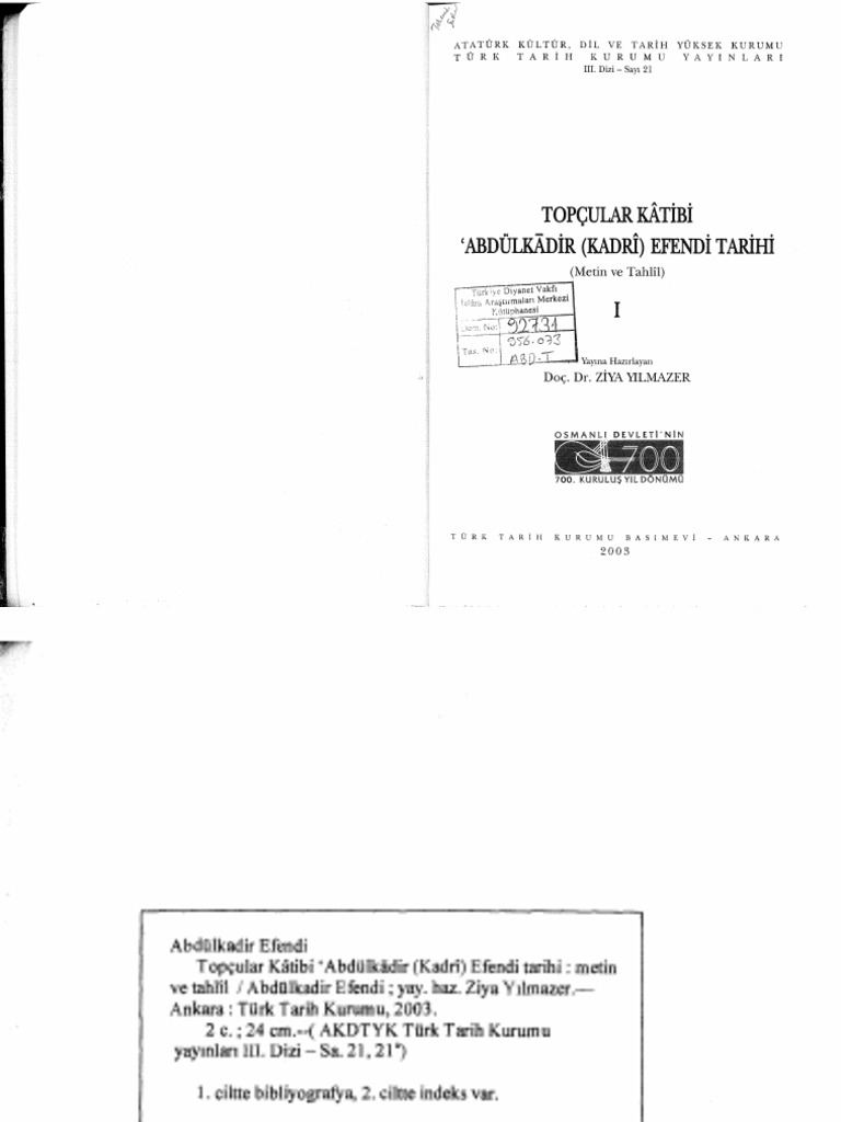 1592 1644 Topcular Katibi Abdulkadir Efendi Tarihi