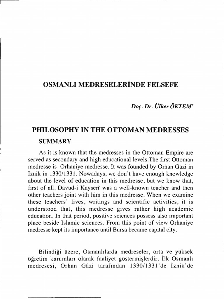 Osmanli Felsefe Calismalari Turkiye De Felsefenin Tarihine Katki