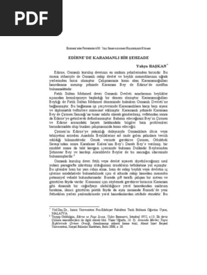 Edirnede Karamanli Bir Sehzade 1 Pdf