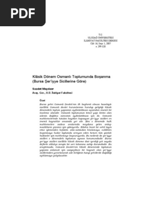 Klasik Donem Osmanli Toplumunda Bosanma Bursa Ser Iyye Sicillerine Gore