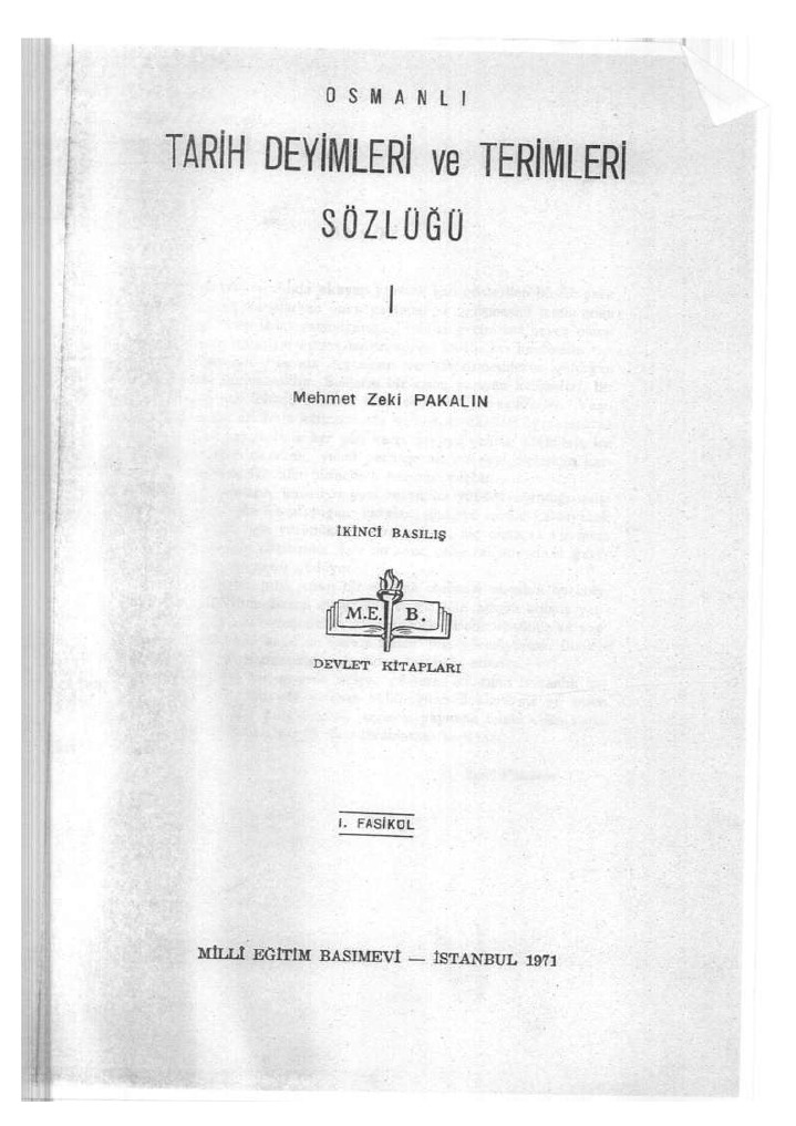 Osmanli Tarih Deyimleri Ve Terimleri Sozlugu 1 Cildin 2 Kismi Mehmet Zeki Pakalin Milli Egitim Basimevi Istanbul 1971 Ii Baski