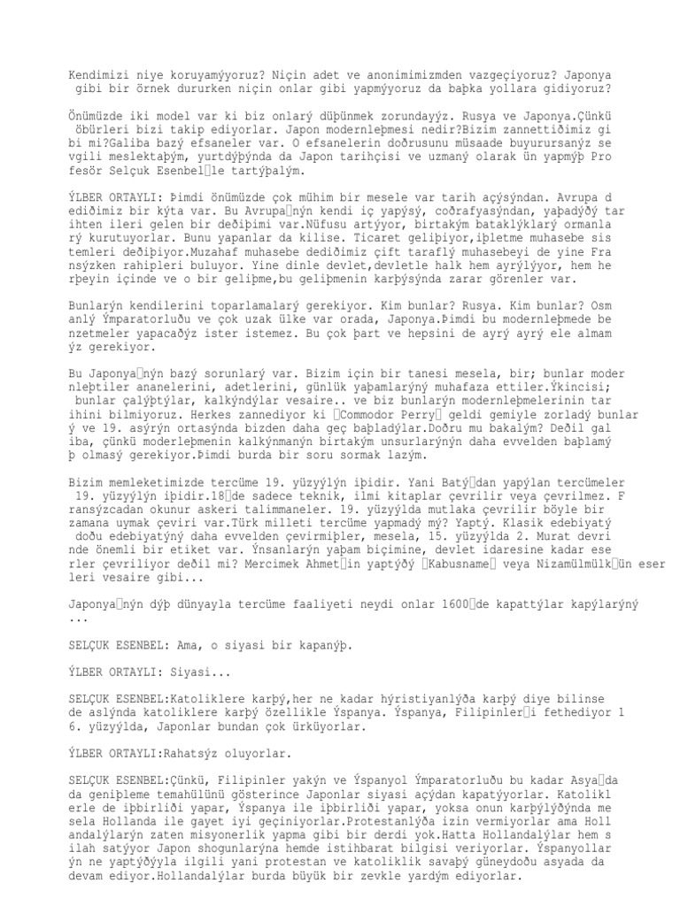 Bu da kemal karpat ın kitabındaki tablonun tam tersi. Herkesinbilgiye sahip olmasının lüzumu yoktur. Osmanlı da okur yazar yüzde 66 mıydı. Ilber ortaylı söyleşide dil üzerinden konuşurken türkiye nin çok büyük bir eski metin katli içinde olduğunu ancak bunun sorumlusunun harf devrimi olmadığın söyledi.