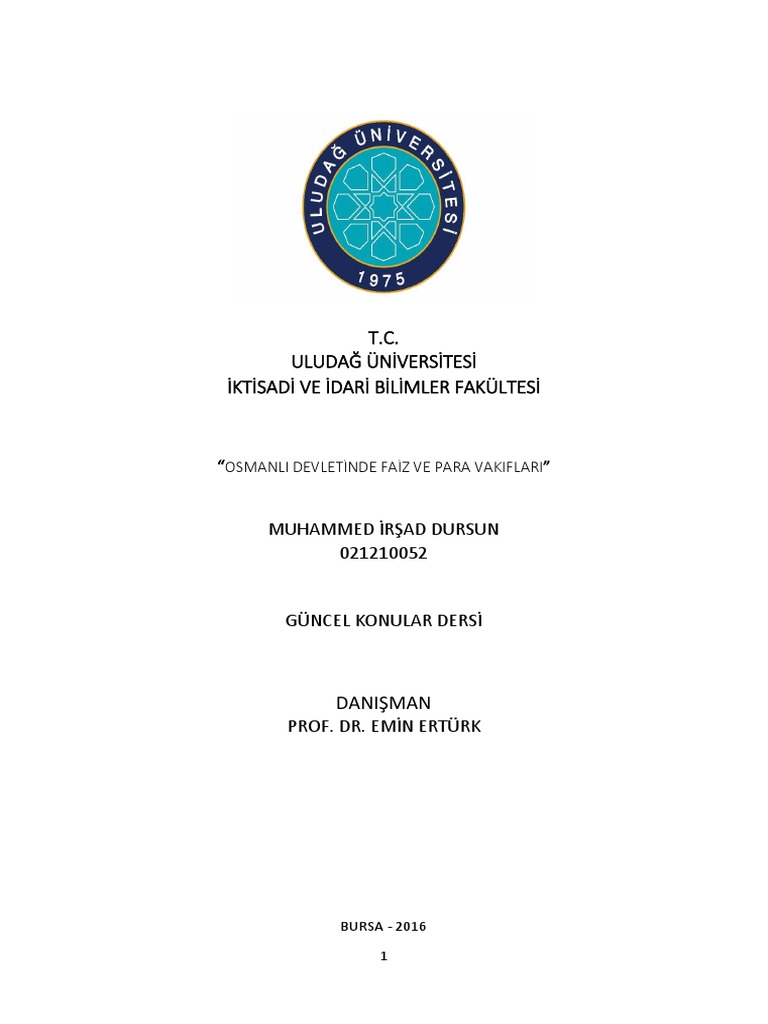 Doc Osmanli Devletinde Faiz Ve Para Vakiflari Irsad Dursun Academia Edu